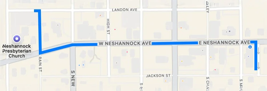 to S. Chestnut St. (behind NW Presbyterian Church)